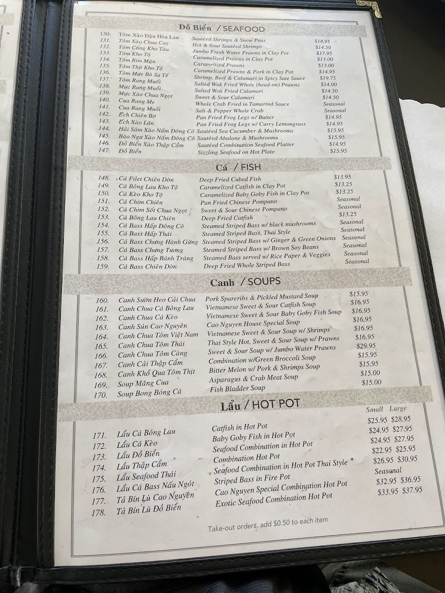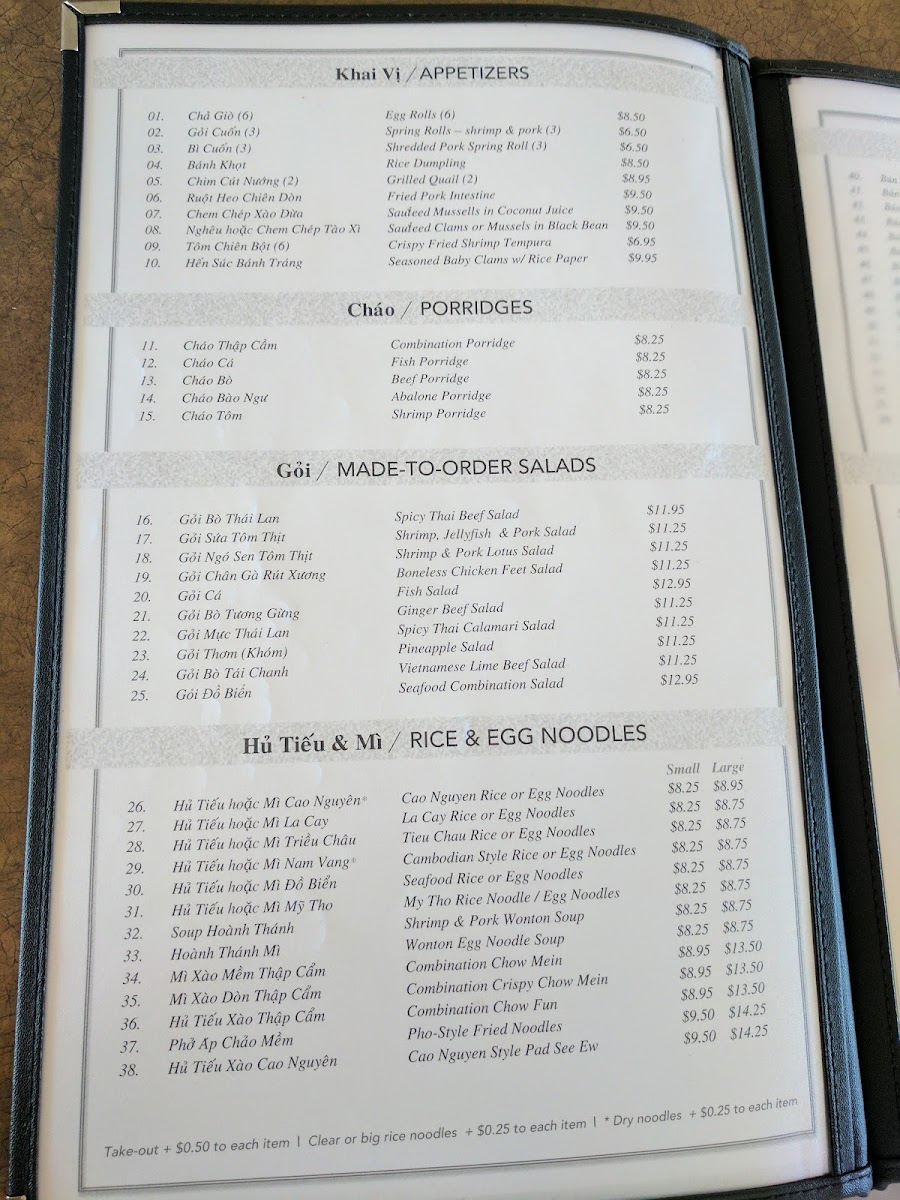 The menu at Cao Nguyên Restaurant offers a welcoming variety of traditional Vietnamese dishes that lean towards comforting, home-style flavors. It features an assortment of light starters, such as spring rolls and grilled quail, perfect for sharing or a casual bite to begin your meal. The selection of porridges brings warmth and simplicity, ideal for any time of day when you’re looking for something nourishing yet easygoing.